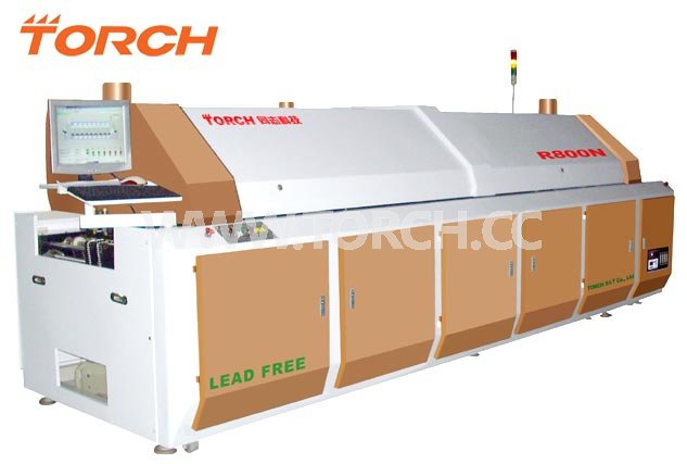 冷卻區(qū)冷卻速度6-8℃/sec,錫點(diǎn)圓滑光亮,PCB板在出口時(shí)溫度<70℃