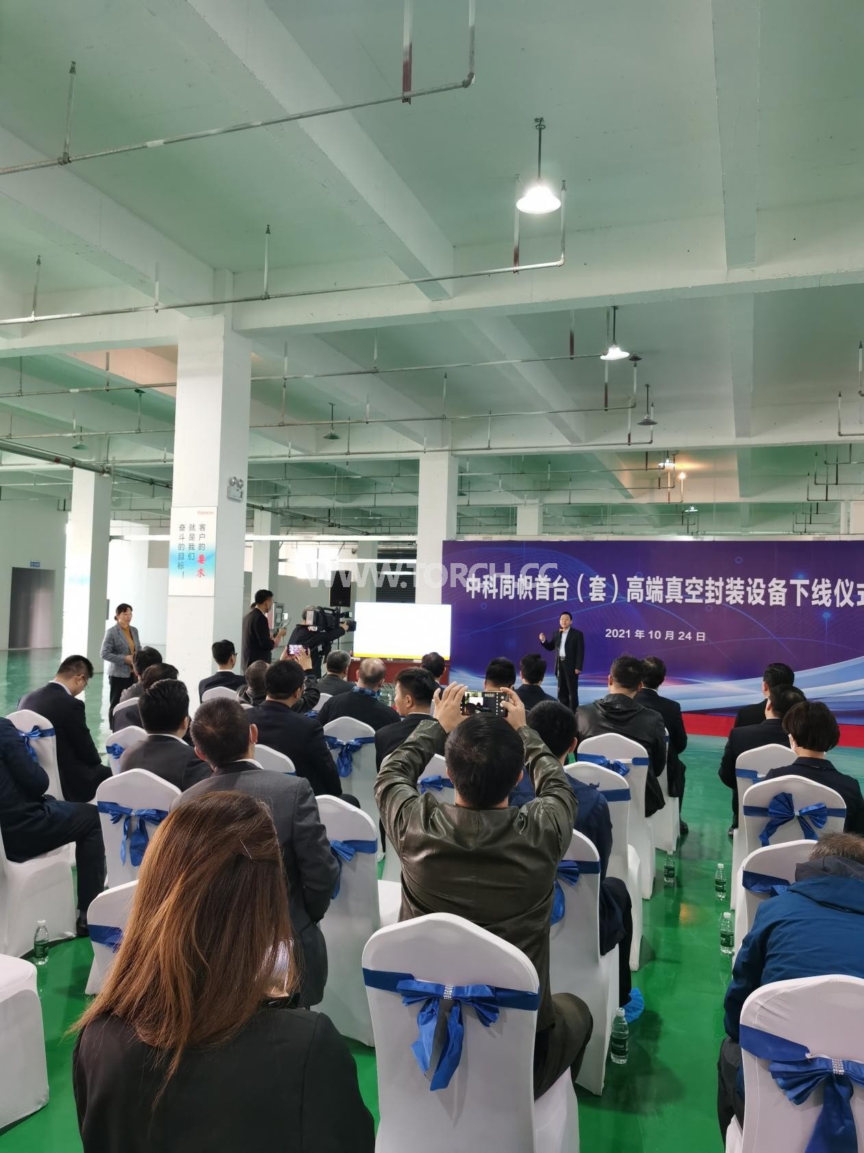 在這個重要時刻,泰興市委常委、組織部部長馮海鏞,泰興市科學(xué)技術(shù)局局長丁曉江,泰興高新區(qū)黨工委書記陳斌,泰興高新區(qū)黨工委副書記、管委會主任蔣杰,泰興高新區(qū)黨工委副書記徐輝、中關(guān)村協(xié)同創(chuàng)新投資基金總經(jīng)理孫次鎖,北京航空航天大學(xué)物理學(xué)院物理系主任郝維昌教授,北京航空航天大學(xué)物理學(xué)院杜軼教授,中國兵器214所李杰教授,武漢理工大學(xué)任龍教授,國內(nèi)封測領(lǐng)域前三的封測廠技術(shù)專家、來自全國各地的行業(yè)專家和中科同志的客戶代表一行數(shù)十人共同出席了這次下線儀式。